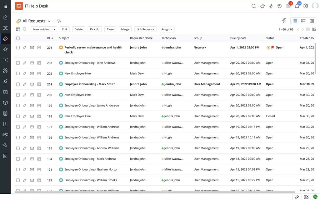 • Employees can easily request workstation fixes, HR support, or time-off applications.
